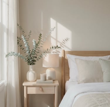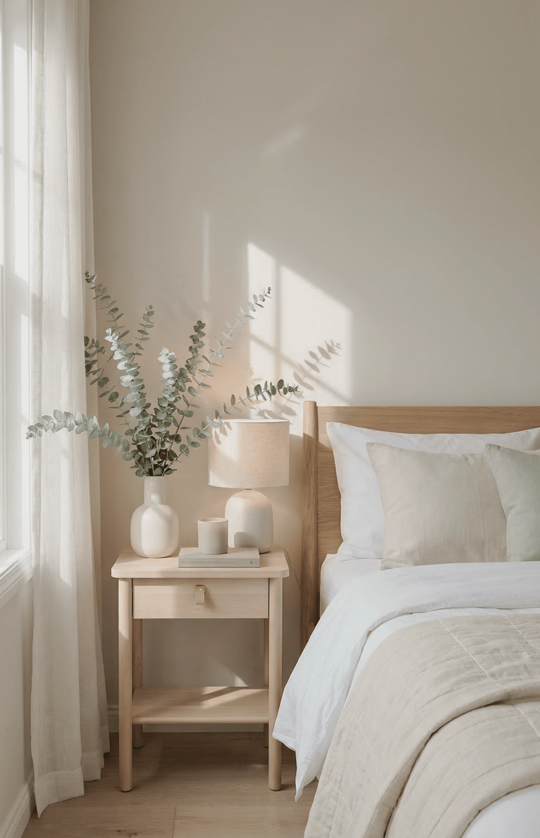 A cluttered nightstand can make an otherwise beautiful bedroom feel disorganized. A simple styling approach helps the space feel intentional and balanced.