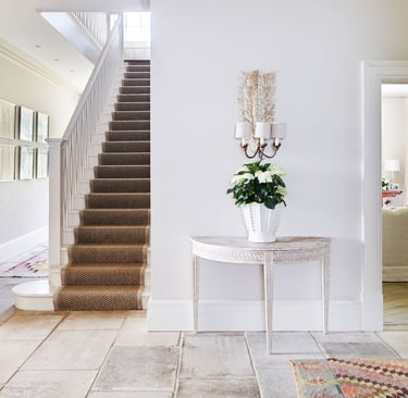 Console tables often become drop zones over time, which can make an entryway feel heavy and cluttered. Spring is the perfect season to reset this surface. A lightly styled console with just a few intentional pieces—such as a tray, one decorative object, and greenery—creates visual balance. Leaving open space allows light to move freely, which immediately makes the entryway feel brighter and more refined.