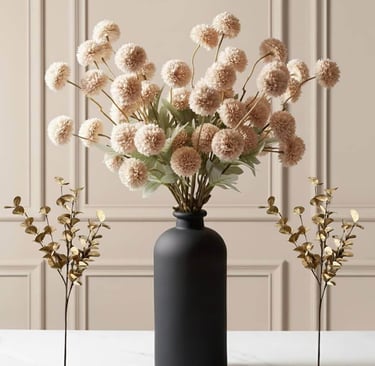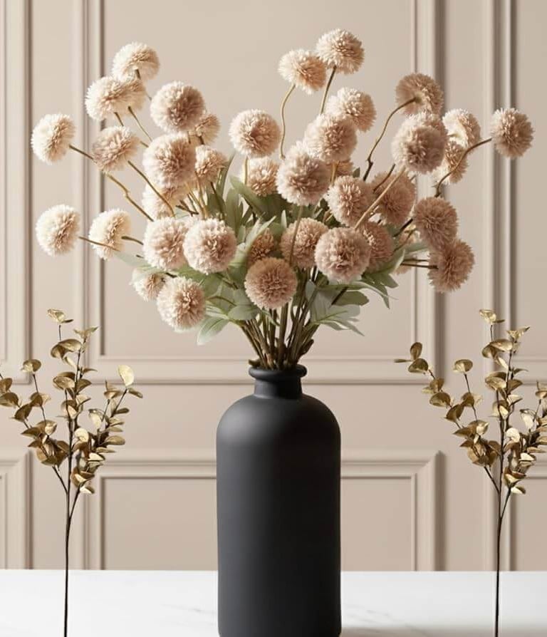 Neutral faux florals & greenery – Realistic stems that add life without maintenance