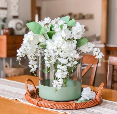 Florals and greenery are the heart of spring decor, but the most elevated spaces use them with intention. Instead of filling every surface with flowers, a single well-placed arrangement can completely change how a room feels. Faux florals have become especially popular for spring because they offer that fresh, organic look without the upkeep, making them perfect for busy homes or low-light spaces. When chosen in soft, natural tones, they blend seamlessly into neutral decor and add instant life to a room.