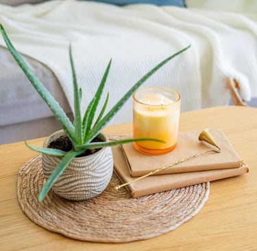 Soft neutral candles – Add warmth and a luxury feel without clutter