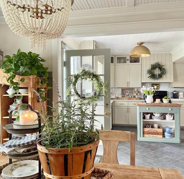 The kitchen is one of the most-used spaces in the home, which makes it one of the easiest places to feel seasonal fatigue. Spring kitchen decor is less about decoration and more about lightening the visual load. When countertops feel open, and materials feel fresh, the entire kitchen instantly feels cleaner, brighter, and more inviting. Small styling shifts here go a long way because they’re noticed every single day.