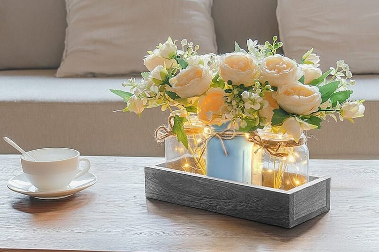 A tray instantly makes everyday items feel styled. Light wood, stone-look, or neutral trays help organize surfaces while adding a high-end feel. When used sparingly, trays create structure without clutter, which is what gives spring decor that clean, elevated look.