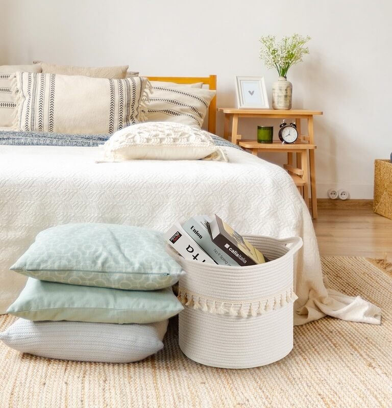 Woven baskets – Add texture while keeping rooms bright and organized