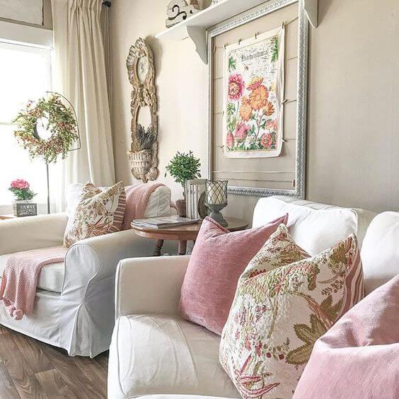 Spring living room decor works best when it focuses on surfaces you see first. Coffee tables, side tables, and sofas naturally draw the eye, so lighting these areas creates an immediate impact. Replacing dark pillow covers with soft neutrals or subtle pastels refreshes the space without changing furniture. A lightweight throw adds softness while keeping the room visually open, especially when draped casually instead of folded neatly.
